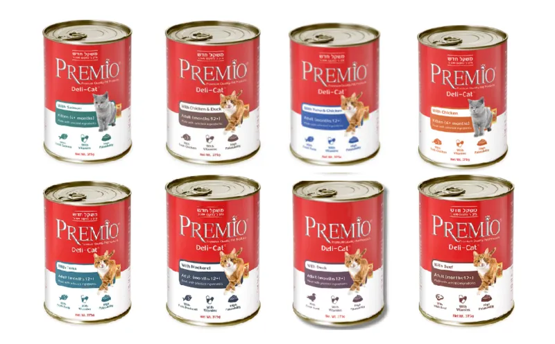 1.725 ש"ח ל-100 גרם שימורי פרמיו פטה לחתול 375 גר'