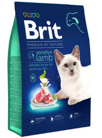 בריט סנסטיב לחתול על בסיס טלה והודו מתאים לחתולים רגישים. מכיל 20% טלה איכותי 15% בשר הודו איכותי.